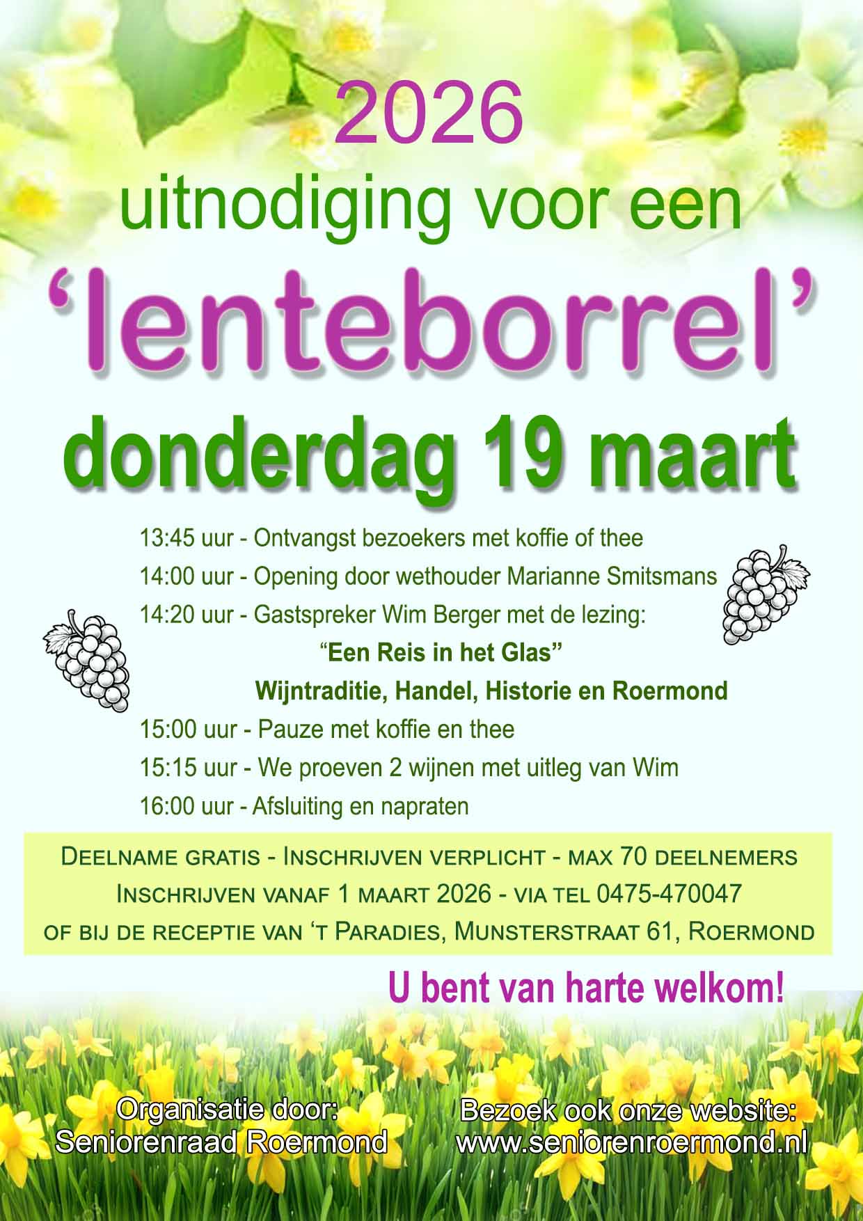 Van wilde wijnstokken tot een goed gevuld glas: wijn heeft een lange weg afgelegd. Tijdens deze bijeenkomst ontdek je hoe wijn zich verspreidde over Europa, hoe Limburg ermee kennismaakte en waarom Roermond uitgroeide tot een echte wijnstad.