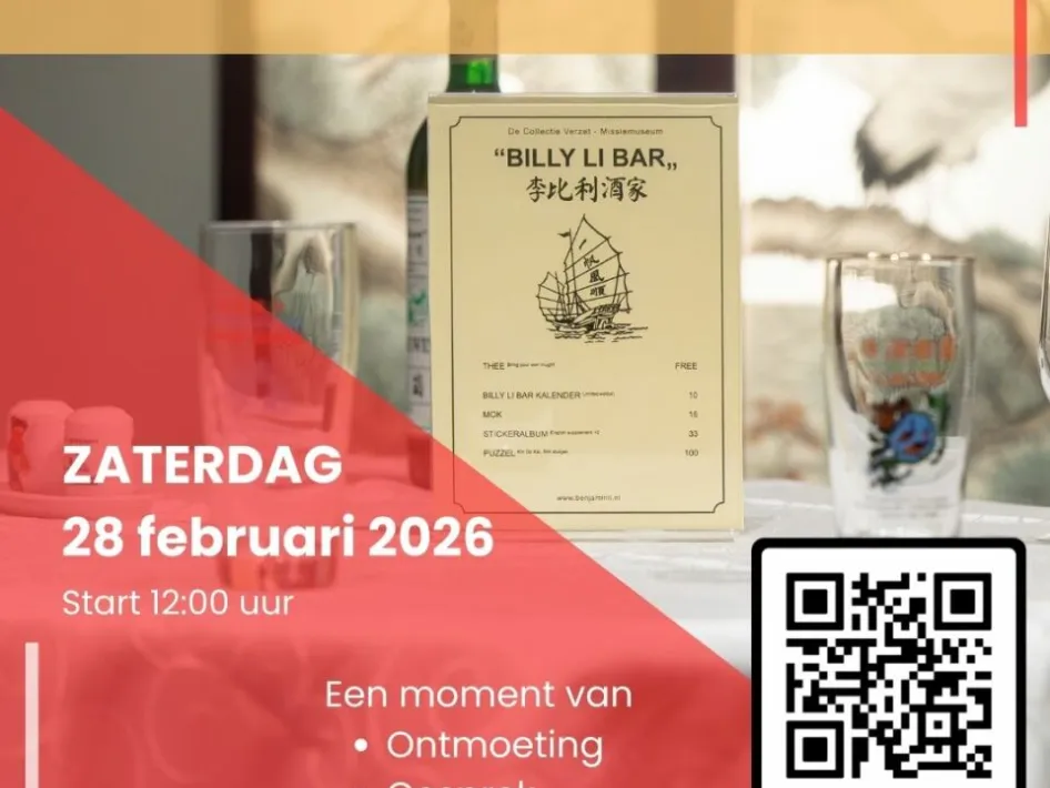 Als afsluiting van de tentoonstelling De Collectie Verzet nodigt Missiemuseum Steyl je uit voor een bijzondere gezamenlijke lunch met kunstenaar Benjamin Li. Op 28 februari om 12:00 uur is er een Chinese lunch in de tentoonstellingsruimte. Een moment van ontmoeting, gesprek en reflectie. Een intieme afsluiting waarin kunst, eten en samenzijn samenkomen.