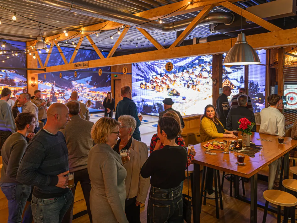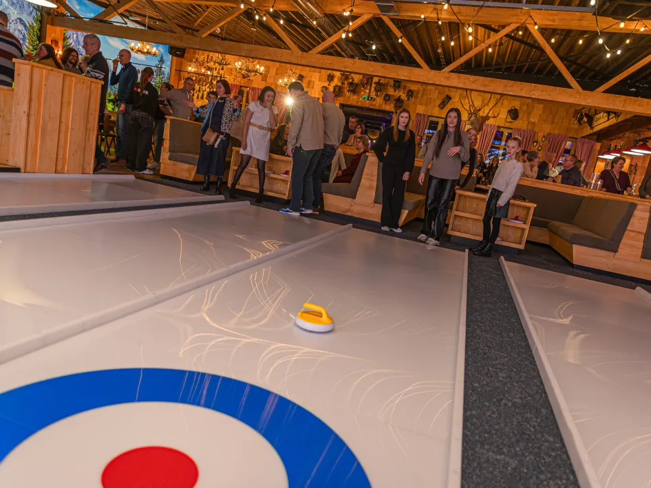 In de Almhütte heerst een warme, Oostenrijkse sfeer. Met de activiteiten curling en bijlwerpen combineer je actief bezig zijn met gezellig samenzijn, eten en drinken.
